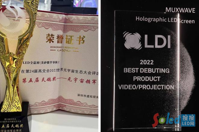展會期間,獲得了工信部工業(yè)文化發(fā)展中心主辦的“魔琺杯”2022 產(chǎn)業(yè)融合發(fā)展——虛擬現(xiàn)實創(chuàng)新大賽總決賽一等獎和“虛擬現(xiàn)實顯示領(lǐng)軍應(yīng)用”獎,同時獲得2022高交會世界元宇宙生態(tài)大會元宇宙(展示類)領(lǐng)軍應(yīng)用獎、二十四屆高交會優(yōu)秀產(chǎn)品獎和2022美國拉斯維加斯舞臺燈光及音響展覽會Best Debuting Product獎。