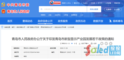 規(guī)劃建設(shè)青島市新型顯示產(chǎn)業(yè)園(以下簡稱“園區(qū)”),完善道路、供水、供熱、燃氣、污水、供電等基礎(chǔ)設(shè)施配套,重點發(fā)展新型顯示模組、面板、背光模組、偏光片、驅(qū)動IC、玻璃基板、柔性線路板等產(chǎn)業(yè)。市級財政連續(xù)3年每年出資1億元用于園區(qū)建設(shè)。