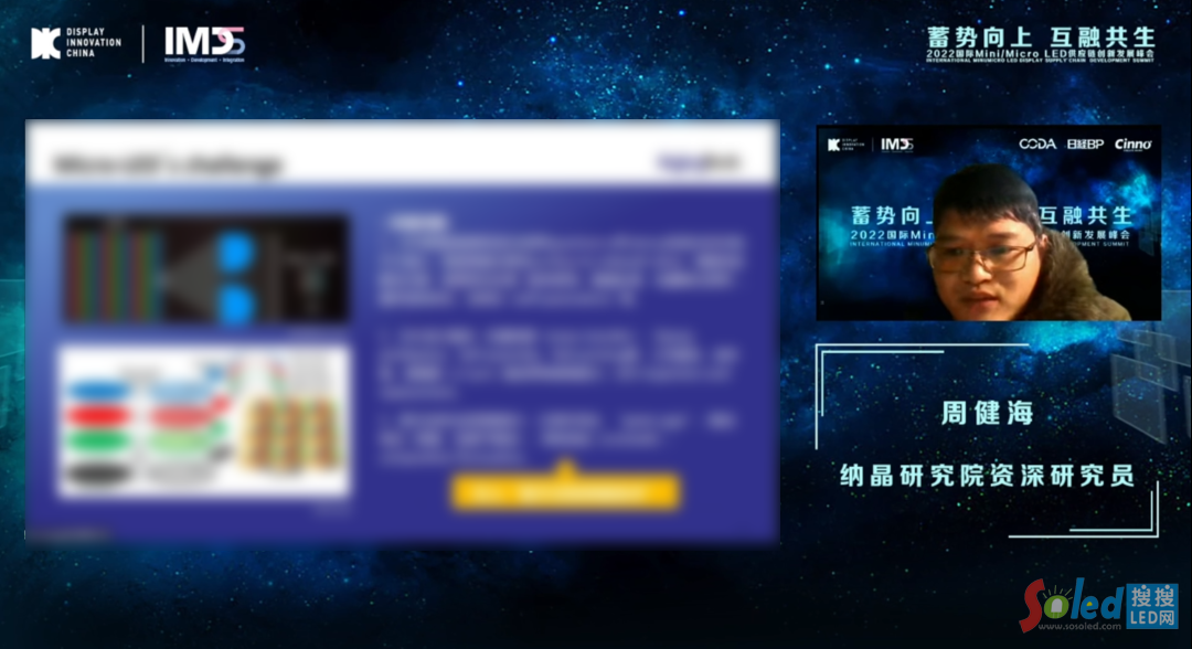 周健海博士介紹量子點(diǎn)是一種具有量子限域效應(yīng)的溶液半導(dǎo)體納米晶體。在Micro LED制造過(guò)程中會(huì)面臨如LED表面缺陷降低發(fā)光效率、巨量轉(zhuǎn)移高良率轉(zhuǎn)移難度大、顯示全彩化實(shí)現(xiàn)難度大等問(wèn)題。引入“量子點(diǎn)色轉(zhuǎn)換技術(shù)”,目的是用于解決顯示全彩化問(wèn)題。