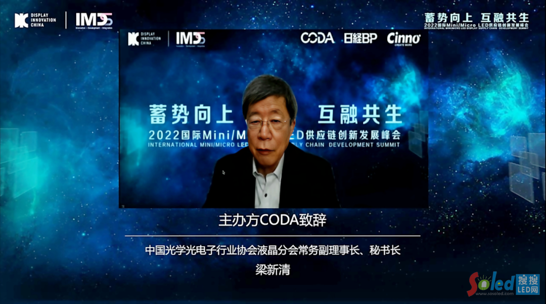 大會(huì)開(kāi)始,首先由主辦方中國(guó)光學(xué)光電子行業(yè)協(xié)會(huì)液晶分會(huì)常務(wù)副理事長(zhǎng)、秘書(shū)長(zhǎng)梁新清發(fā)表致辭。“Mini LED作為Micro LED的前哨站,在2021年迎來(lái)規(guī)模化商用的元年,并在2022年應(yīng)用終端迅速發(fā)展,成為L(zhǎng)ED及顯示行業(yè)的下一個(gè)增長(zhǎng)點(diǎn)。而Micro LED作為備受矚目的下一代顯示技術(shù),應(yīng)用前景與發(fā)展空間也不容小覷。”