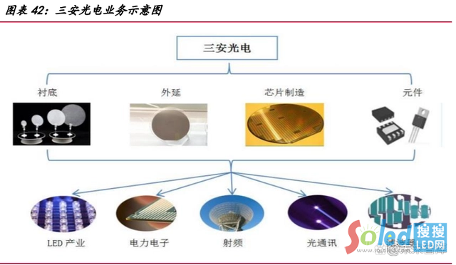 公司是國內(nèi)規(guī)模首位、品質(zhì)領(lǐng)先的全色系超高亮度 LED 外延及芯片產(chǎn)業(yè)化生產(chǎn) 企業(yè),在傳統(tǒng)優(yōu)勢領(lǐng)域的基礎(chǔ)上,積極提升 Mini/Micro LED、車用 LED、植物照明 LED、紫外/紅外 LED 等細分領(lǐng)域產(chǎn)品的結(jié)構(gòu)占比;從事的射頻前端、電力電子、光 技術(shù)化合物半導(dǎo)體集成電路業(yè)務(wù),營收規(guī)模正隨著產(chǎn)能爬坡不斷壯大。
