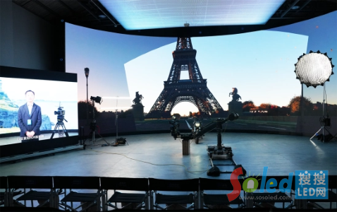 這間虛擬制作影棚位于上海城市中心愚園路靠近江蘇路,影棚采用索尼黑彩晶 B 系列 LED 屏,屏高 5.47 米,弧長(zhǎng) 15.2 米,總面積達(dá)到 83 平米。