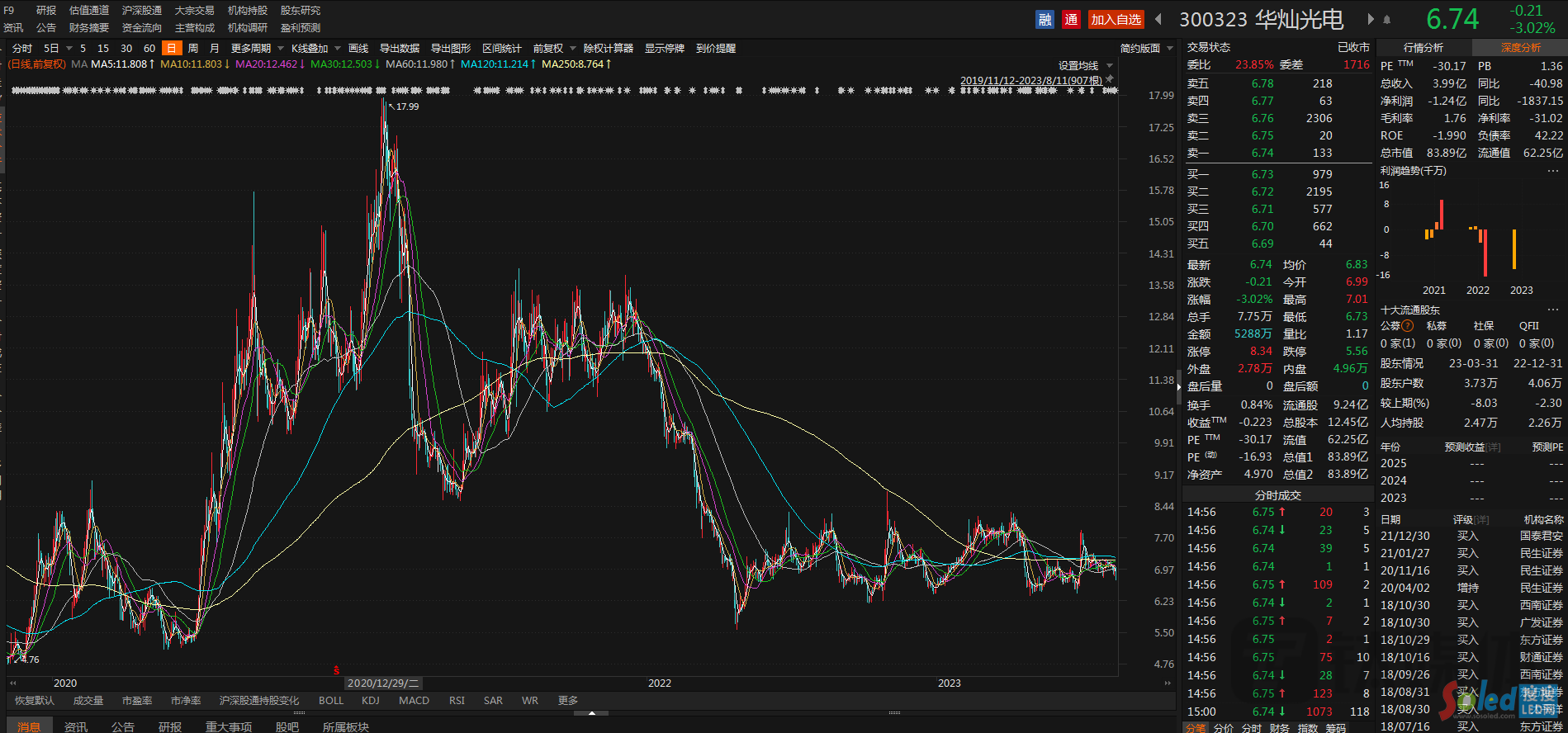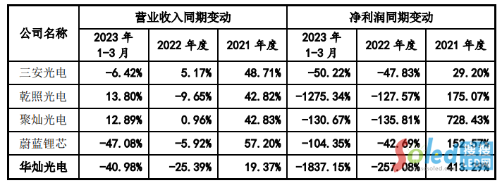 雖然公司還沒發(fā)布2023年中報,但是從同行三安光電的半年預報來看,其扣非凈利潤出現(xiàn)虧損。對此,三安光電表示,由于LED芯片售價下降、稼動率不足導致成本上升、存貨計提跌價損失,導致虧損。由此來看,公司的中報業(yè)績或難樂觀。