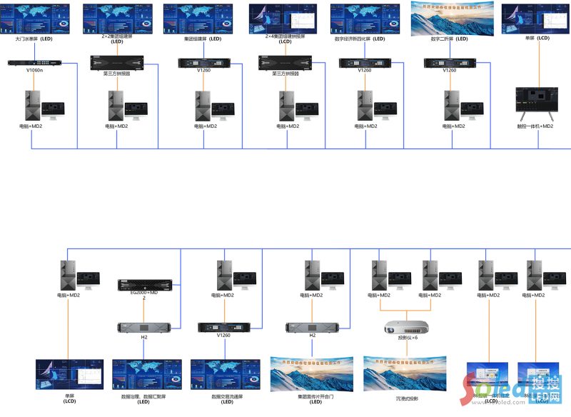 嗨動(dòng)視覺全鏈路可視化應(yīng)用解決方案,以可視化控制平臺(tái)為中心,集成專業(yè)的自研核心設(shè)備,為該項(xiàng)目提供全方位控制支持。