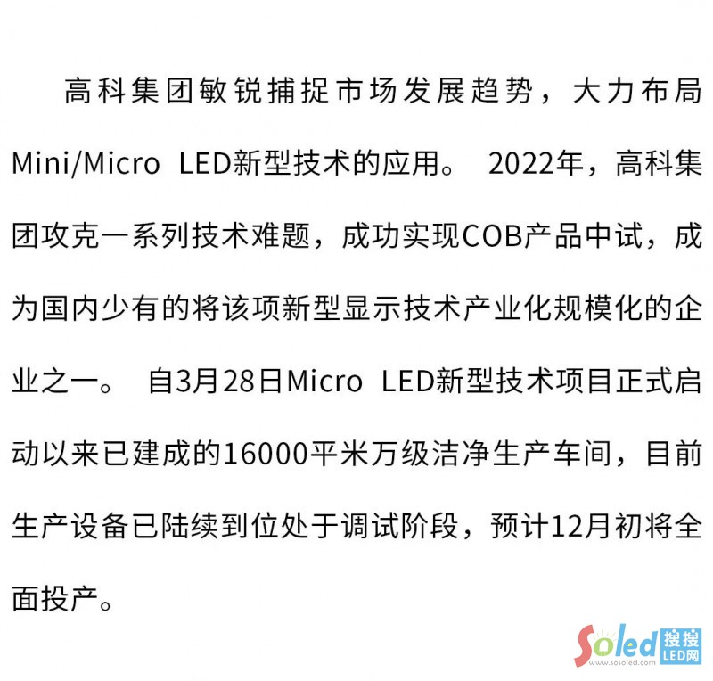高科MLED COB全面量產(chǎn) 開啟未來新“視界”
