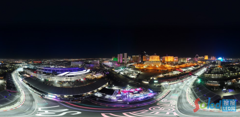 據(jù)介紹,F(xiàn)1 拉斯維加斯大獎賽上的 10 毫米三星 LED 顯示屏擁有超過 2200 萬像素,跨度比足球場還寬,最高亮度超過 8000 尼特。