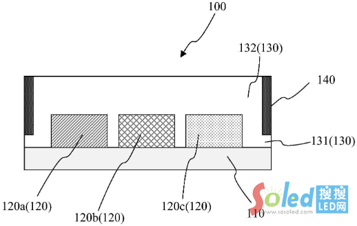 該專利摘要顯示,本申請涉及一種LED封裝器件及其制作方法、LED模組及其制作方法。LED封裝器件包括:基板;LED芯片,LED芯片設(shè)置于基板上;封裝膠,封裝膠設(shè)置于基板上且覆蓋LED芯片,封裝膠包括第一部段和位于第一部段頂部的第二部段,第一部段和第二部段呈一體式結(jié)構(gòu),第二部段在基板上的正投影在第一部段在基板上的正投影內(nèi);擋光墻,擋光墻覆蓋第二部段的外側(cè)面,擋光墻圍繞LED芯片設(shè)置。擋光墻可以阻擋LED封裝器件的側(cè)向出光,使得LED封裝器件被構(gòu)造為頂部出光型器件,當(dāng)包括有多個LED封裝器件的LED模組拼接成顯示屏?xí)r,有利于避免因側(cè)向出光而導(dǎo)致的拼接處出現(xiàn)彩線、暗亮線等問題,由此,可以改善拼接顯示效果。