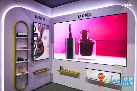 而結(jié)合美妝行業(yè)特點(diǎn)的TCL智慧美妝解決方案,采用商用智屏、2*2 LCD拼接屏和條形屏,組合成絢麗多彩的畫面,優(yōu)化門店產(chǎn)品的展示效果,讓客戶更全面了解品牌調(diào)性及產(chǎn)品信息,提升攬客效率。