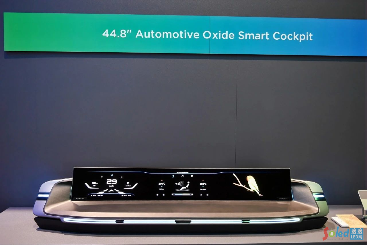 另外一款全球首發(fā)的京東方44.8英寸車載超大尺寸氧化物智能座艙同樣亮點十足,搭配玻璃基MLED背光可實現百萬級對比度和2000nit高亮畫質,完美滿足消費者對品質和沉浸式視覺體驗感的卓越追求。