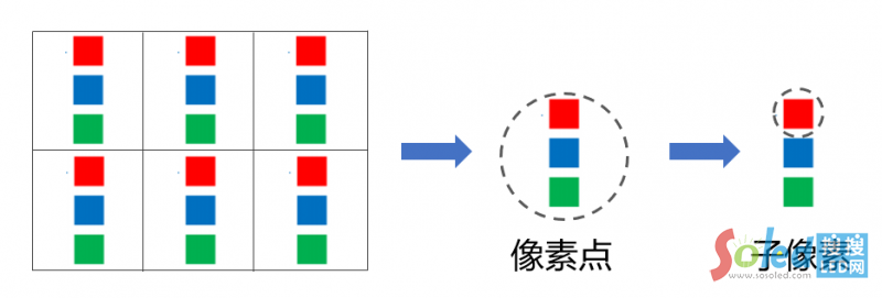普通實像素中,RGB三個子像素一般由上到下呈一字排列。與常規(guī)的實像素顯示技術(shù)不同,虛擬/亞像素屏中的每個像素點(diǎn)只包含一個或兩個子像素。通過借用相鄰像素點(diǎn)內(nèi)的子像素,可以合成RGB像素點(diǎn),從而實現(xiàn)圖像的渲染和顯示。