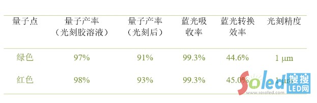 量子點(diǎn)光刻膠的性能指標(biāo)