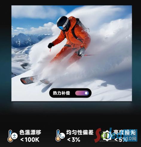 該技術搭載于諾瓦星云COEX控制系統(tǒng),解決了不同灰階、不同環(huán)境溫度下,箱體因溫度分布不均導致的色溫漂移、紅色條紋/青色條紋等問題,讓LED顯示屏始終獲得監(jiān)視器級別溫度的色溫與色準,畫質實現(xiàn)最佳呈現(xiàn)。