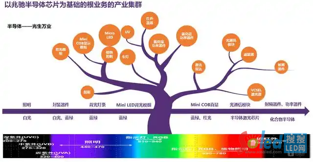 而LED芯片主要襯底為藍寶石,該技術與GaAs、SiC、GaN等化合物半導體工藝技術同源。遵循襯底技術的同源性和全光譜技術的可覆蓋性,兆馳半導體近年來持續(xù)向化合物半導體企業(yè)轉型升級,將芯片的應用范圍向光通信、射頻器件、功率器件等領域延伸,打開化合物半導體無限的想象空間。