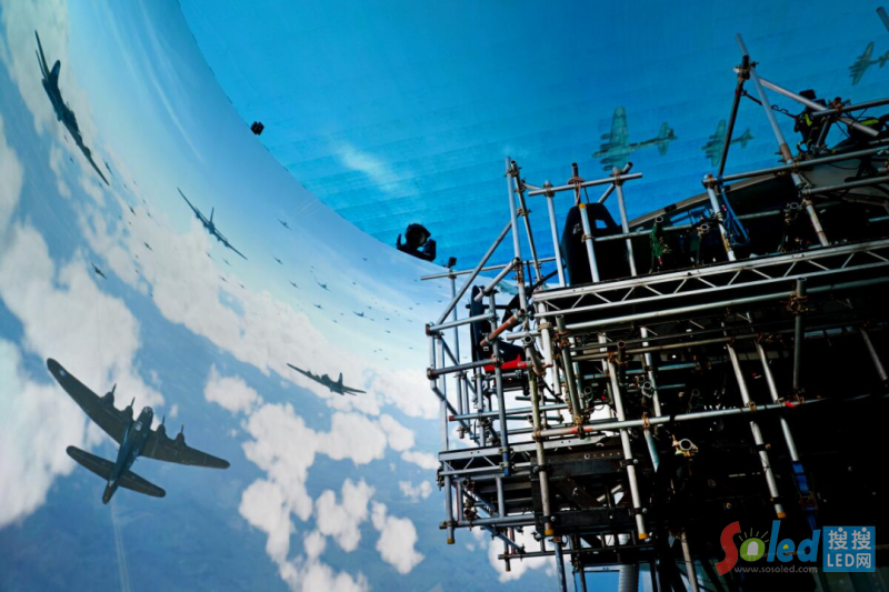 為逼真還原二戰(zhàn)時(shí)期的空戰(zhàn)場(chǎng)景,劇組開(kāi)創(chuàng)性地大規(guī)模采用虛擬拍攝技術(shù),由奧拓電子 RM2.3 系列 LED 屏幕搭建的沉浸式XR虛擬影棚,為全劇 75% 的場(chǎng)景提供了高效且真實(shí)的拍攝環(huán)境。這一技術(shù)突破不僅為觀眾帶來(lái)了高度還原的視覺(jué)體驗(yàn),也為今后同類型歷史劇制作開(kāi)拓了全新的可能性。