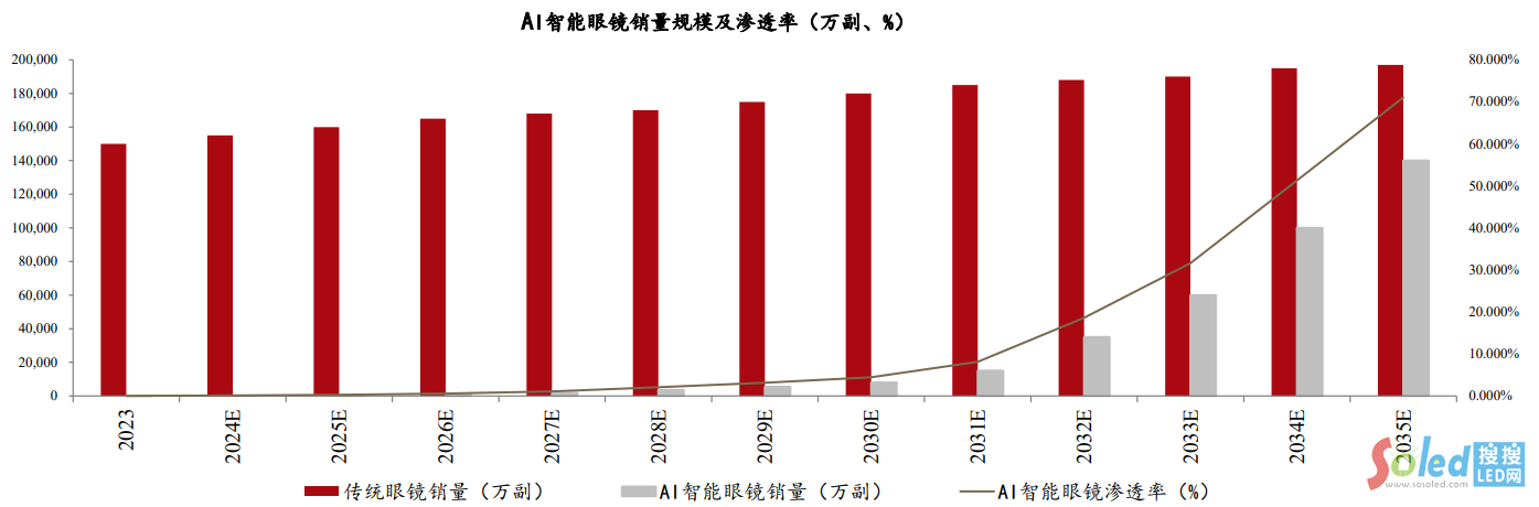 博士眼鏡、明月鏡片、康耐特光學(xué)等企業(yè)已通過(guò)渠道合作、技術(shù)研發(fā)深度布局。未來(lái),AI賦能將推動(dòng)智能眼鏡沿“音頻→拍攝→AR”路徑迭代,光波導(dǎo)+MicroLED方案成技術(shù)主流,2035年全球滲透率或達(dá)70%,有望替代智能手機(jī)成為下一代通用計(jì)算平臺(tái)。