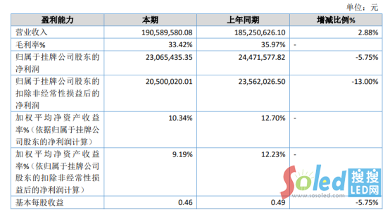 報(bào)告期內(nèi),公司實(shí)現(xiàn)營(yíng)業(yè)收入 19,058.96 萬(wàn)元,比上年同期增加 2.88%;營(yíng)業(yè)利潤(rùn) 2,590.37萬(wàn)元,比上年同期減少 11.45%;歸屬于公司股東的凈利潤(rùn) 2,306.54 萬(wàn)元,比上年同期減少 5.75%;基本每股收益為 0.46 元,比上年同期減少 5.75%。