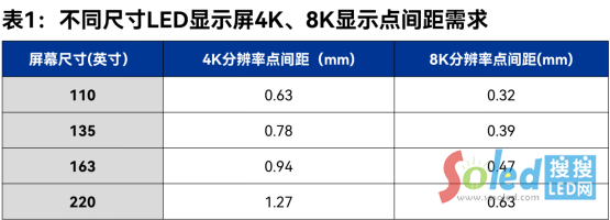 100英寸以上的大尺寸戶內(nèi)顯示中點(diǎn)間距直接決定畫(huà)面清晰度,163英寸屏幕實(shí)現(xiàn)4K(3840×2160)分辨率需P0.94mm間距, 8K(7680×4320)分辨率則需P0.47mm。目前主流廠商通過(guò)倒裝芯片與微米級(jí)COB技術(shù),已將點(diǎn)間距降到0.9mm以下,其中雷曼光電等企業(yè)實(shí)現(xiàn)P0.47mm量產(chǎn),推動(dòng)4K、8K超高清顯示在指揮監(jiān)控、商用會(huì)議、家庭影院等全場(chǎng)景落地。