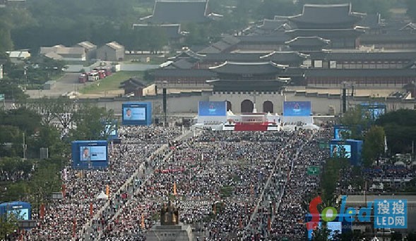 8月16日上午,教皇方濟(jì)各在韓國(guó)“國(guó)門(mén)”——光化門(mén)主持“韓國(guó)124名殉教者宣福禮”。在韓國(guó)首爾市政府大樓至光化門(mén)長(zhǎng)達(dá)4.5公里的廣場(chǎng)大道兩旁,一共安裝了26塊“魔幻舞臺(tái)”戶外全彩屏, 這些顯示屏均選用的是國(guó)星光電戶外高防水全彩3535系列器件。國(guó)星光電3535器件為這些全彩LED顯示屏提供了出色、穩(wěn)定的高清畫(huà)面,全方位接受百萬(wàn)韓國(guó)人民觀看。