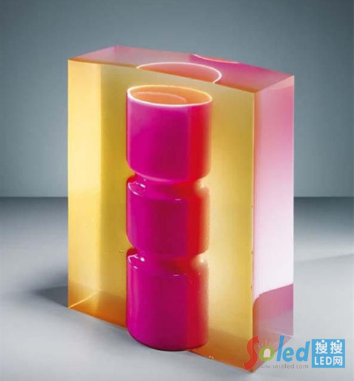 這是法國某設(shè)計事務(wù)所設(shè)計的果凍燈系列,在顏色上鮮艷靚麗,讓果凍這種常見的食物也可以容納不同的光源體。