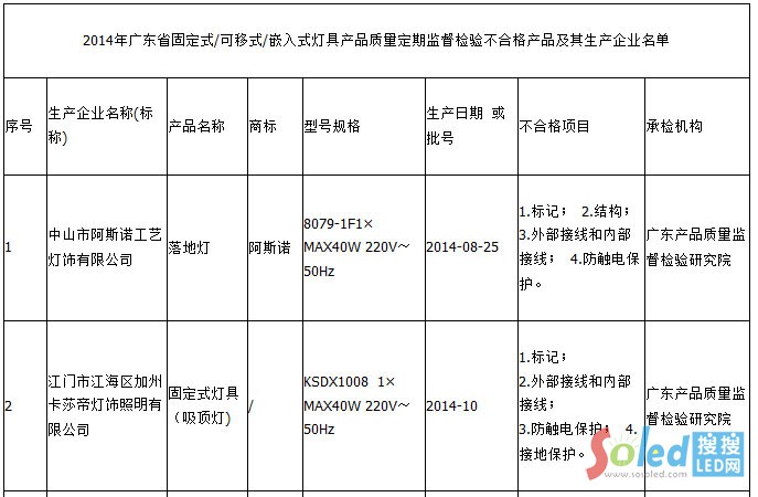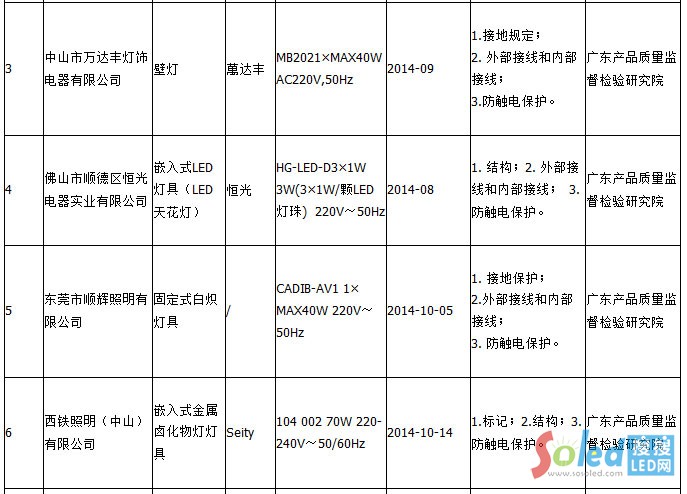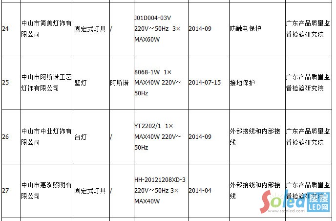 本次檢驗(yàn)發(fā)現(xiàn)31批次產(chǎn)品不合格,包括阿斯諾落地?zé)、萬(wàn)達(dá)豐壁燈、恒光嵌入式LED燈具(LED天花燈)、卡米達(dá)LED燈具、龍的LED固定式燈具、馬斯登可移式白熾燈燈具(臺(tái)燈)、皇嘉燈飾固定式白熾燈具等品牌產(chǎn)品。不合格項(xiàng)目涉及到結(jié)構(gòu)、外部接線(xiàn)和內(nèi)部接線(xiàn)、接地規(guī)定、防觸電保護(hù)、耐熱/耐火和耐起痕、諧波電流、插入損耗(騷擾電壓)等。