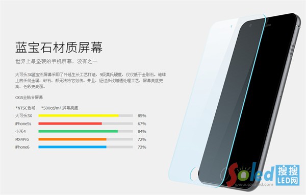 在大可樂官網(wǎng)上,對于大可樂3的屏幕描述是采用藍寶石材質(zhì),9級莫氏硬度,僅僅低于金剛石,是世界上最堅硬的手機屏幕。據(jù)大可樂官方稱:鑒定結果由技術人員得出,如果鑒定結果是人為原因?qū)е聯(lián)p壞,肯定要付費維修。