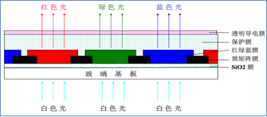 文章2.2.1中已經(jīng)了解到白光經(jīng)過LCD中的濾光片(其在LCD中的位置如圖1)后對(duì)應(yīng)濾光片顏色的光線將被傳出,說明CF具有能夠?qū)⒛骋话坠夥蛛x成R、G、B三色光的功能。