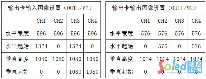 5、分別設(shè)置輸出卡K和L的CH1、CH2、CH3、CH4輸入圖像參數(shù)和輸出圖像參數(shù)如下: