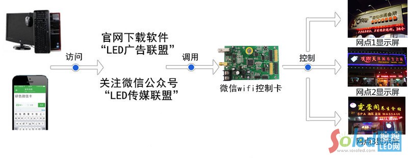 二、休閑會(huì)所LED門頭屏微信wifi控制系統(tǒng)原理圖