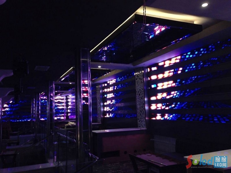 酒店、酒吧等娛樂場所也是室內(nèi)全彩屏的安裝陣地。廣東湛江新開業(yè)的酒吧迫不及待的安裝了華麗麗的LED顯示屏作為背景墻。這塊P10室內(nèi)全彩屏并非原裝安裝,而是根據(jù)酒吧的環(huán)境和要求被切分成一塊塊的條形屏。該屏的總面積接近80平方米,當(dāng)整屏被點(diǎn)亮?xí)r,整個酒吧的墻面炫彩一新,瞬間閃耀,增加了酒吧的無限魅力。
