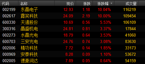 藍(lán)寶石概念股盤中持續(xù)走高,個(gè)股全線飄紅,截至發(fā)稿,板塊整體上漲逾4%,個(gè)股方面,東晶電子、露笑科技漲停,天通股份上漲逾5%,晶盛機(jī)電、水晶光電、三安光電上漲逾3%。