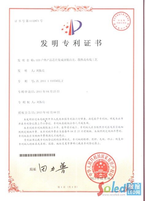 | 發(fā)證機(jī)構(gòu): | 中國(guó)人民共和國(guó)國(guó)家知識(shí)產(chǎn)權(quán)局 | 發(fā)證時(shí)間 : | 2013-02-06 |