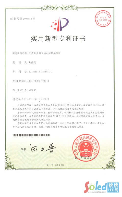 | 發(fā)證機(jī)構(gòu): | 中華人民共和國國家知識(shí)產(chǎn)權(quán)局 | 發(fā)證時(shí)間 : | 2011-11-23 |