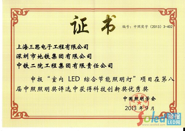 » 第八屆中照照明獎科技創(chuàng)新獎優(yōu)秀獎—室內(nèi)LED綜合照明燈