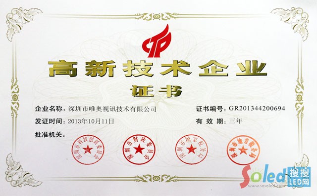 唯奧視訊獲“國(guó)家高新技術(shù)企業(yè)”稱號(hào)
