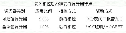 相控后沿和前沿調(diào)光器特點(diǎn)如表2所示。