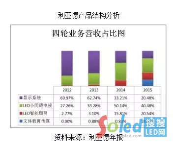 利亞德是LED小間距屏概念的開山鼻祖,正是在其推動下,小間距顯示屏市場起于微末走向濫觴,2012年總營收僅5.69億,小間距屏幕收入僅占營收的27%,然而到2015年,總營收達到20.2億,總收入3年內(nèi)翻兩番,接近4倍,而小間距顯示屏比例也達到40%,超過8億RMB,成為小間距顯示屏市場上名副其實的霸主。