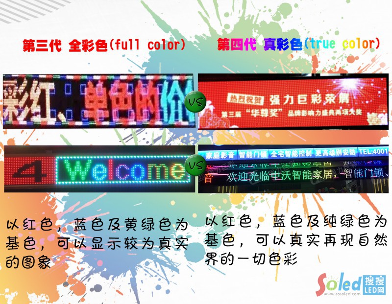 強(qiáng)力巨彩X精靈系列產(chǎn)品采用優(yōu)質(zhì)表貼燈管,屬于四代真彩色(true color)。不同于一般門頭直插彩色顯示屏只能顯示較為真實(shí)的圖象,X精靈系列產(chǎn)品以紅色,藍(lán)色及綠色為基色完美混光,真實(shí)再現(xiàn)自然界的一切色彩;并且沒(méi)有門頭直插彩色顯示屏的折射等干擾,其艷麗的色彩、鮮亮的高亮度、細(xì)膩的對(duì)比度,完勝三代全彩色(full color)的直插門頭。