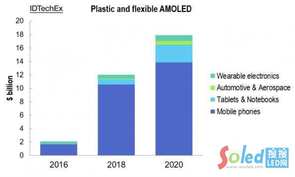 IDTechEx Research在最新調(diào)查報(bào)告《2016-2026年OLED顯示器預(yù)測(cè):塑膠與軟性顯示器崛起》(OLED Display Forecasts:The Rise of Plastic and Flexible Displays)中指出,OLED顯示器的兩家主要制造商均發(fā)布加碼投資于擴(kuò)大其產(chǎn)能。三星(Samsung Display)計(jì)劃在2015至2017年之間投資30億美元,打造一條新產(chǎn)線,而其競爭對(duì)手LG Display則承諾為兩座新制造廠投入超過90億美元,以期主導(dǎo)這一產(chǎn)業(yè)。