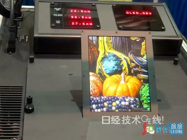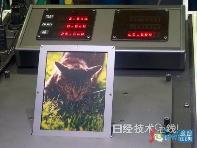 試制的顯示屏的畫面尺寸為4.38英寸,像素數(shù)為768×1024。精細(xì)度為292ppi。開口率方面,液晶為76%,OLED為3.9%。為了進(jìn)一步降低功耗,TFT采用既能低頻驅(qū)動,也能驅(qū)動OLED的氧化物半導(dǎo)體IGZO。與平時的60Hz驅(qū)動相比,通過采用1/3Hz驅(qū)動,可將反射型液晶屏的耗電量削減至約1/180。