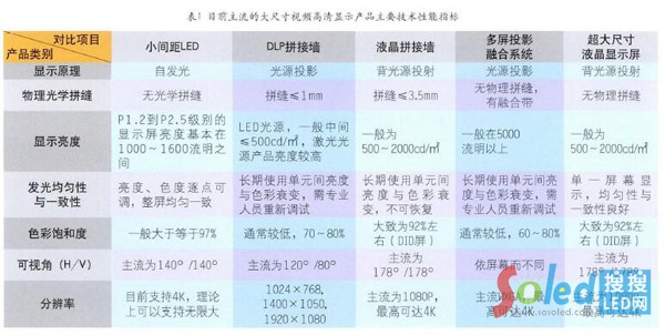 LCD和PDP都有物理和光學(xué)拼縫,LCD拼縫目前最小為3.5mm,DLP稍好一些,可以達(dá)到0.5~1mm,多屏投影融合在處理得當(dāng)?shù)臅r(shí)候能夠?qū)⑵唇訁^(qū)域處理掉;小間距LED顯示技術(shù)可以實(shí)現(xiàn)光學(xué)無拼縫,超大尺寸液晶顯示屏雖然沒有物理及光學(xué)拼縫,但大面積顯示尺寸受限。