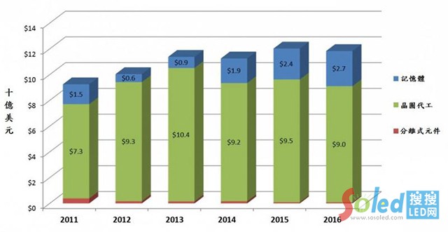 而以中國臺灣而言,根據(jù)SEMI Taiwan先前預(yù)測,2015和2016年,臺灣前段晶圓廠整體投資預(yù)計將達120億美元。除了晶圓代工廠技術(shù)和產(chǎn)能投資的帶動,2014年開始臺灣DRAM晶圓廠的支出同樣開始復(fù)蘇,并預(yù)期將維持成長至2016年。
