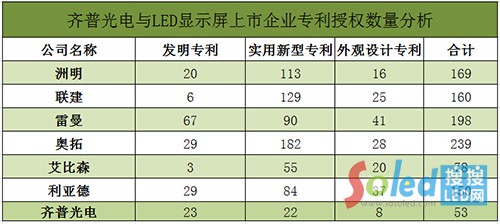 齊普光電與LED顯示屏行業(yè)上市企業(yè)專(zhuān)利授權(quán)數(shù)量分析