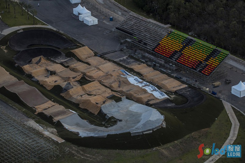 此前,由于深陷政治、經(jīng)濟(jì)危機(jī),巴西奧運(yùn)籌備工作已被奉為“最差、最糟、坑爹”。首先是各個(gè)場館的建設(shè),完全跟不上節(jié)奏。圖為6月17日拍攝的德奧多羅體育場,這里將是自行車越野賽的場地,四周仍然一片凌亂,觀眾席也只安裝了一部分座椅。