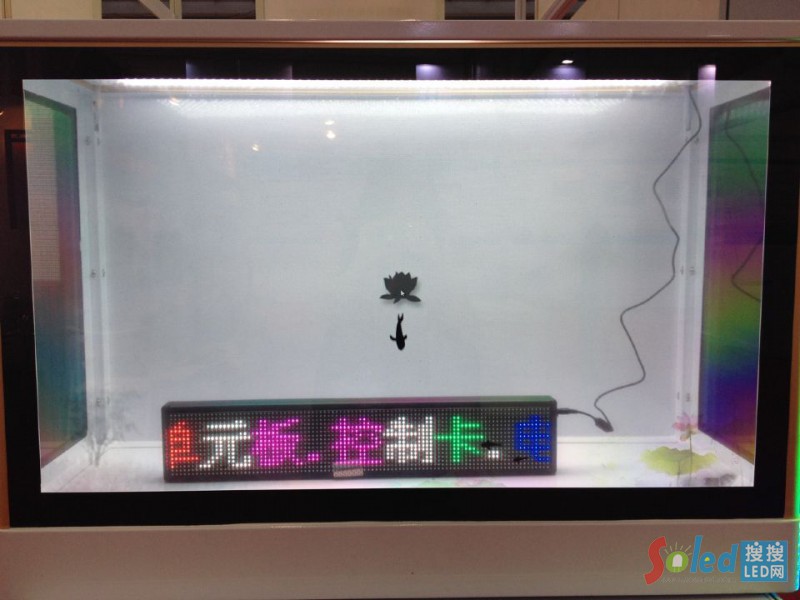 展會(huì)上,一款以櫥窗式展出的OLED透明屏吸引了記者的眼球,通過與普光樂達(dá)光電的總經(jīng)理韓小平溝通了解到,OLED櫥窗式透明屏通常結(jié)合實(shí)物展示,可同時(shí)配上產(chǎn)品相應(yīng)的圖片和宣傳視頻,還可做成魚缸類的裝飾產(chǎn)品,防水性能需要通過特殊處理方式來實(shí)現(xiàn)。在商業(yè)領(lǐng)域上,其炫動(dòng)的廣告信息與終端產(chǎn)品、櫥窗產(chǎn)品等靜態(tài)實(shí)物相結(jié)合,可強(qiáng)化顧客的產(chǎn)品印象以及購物體驗(yàn),促進(jìn)商家的產(chǎn)品銷量,如商場珠寶、手表、電子產(chǎn)品等,在科技展覽、博物館文物等領(lǐng)域也有廣泛應(yīng)用。