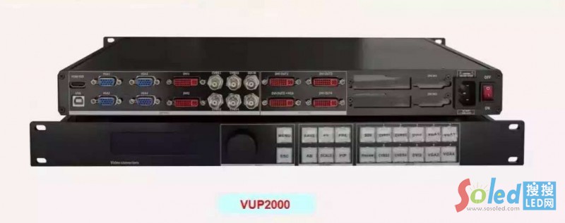 產(chǎn)品特點(diǎn):VUP2000支持畫中畫及畫外畫、切換淡入淡出、無縫切換效果、12bit的高清畫質(zhì)處理,單DVI扣輸出分辨率1920*1080@60Hz,輸入11路輸出4路,可內(nèi)置4張發(fā)送卡。
