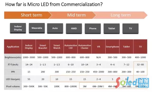▲ Micro LED 應(yīng)用商業(yè)化量產(chǎn)速度(圖片來(lái)源:LEDinside)