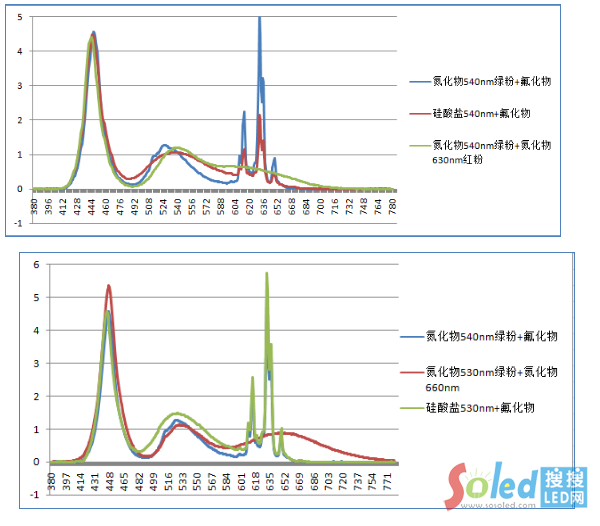 實際應用中,氟化物常搭配氮化物綠粉應用在高NTSC需求(NTSC≥85%)的LED產(chǎn)品上。