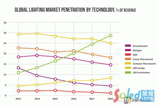 目前,LED業(yè)者已經(jīng)殺入建筑照明領(lǐng)域,估計(jì)2013年底可搶到14%的市場(chǎng)份額。預(yù)計(jì)未來(lái)幾年,建筑照明領(lǐng)域?qū)⒊霈F(xiàn)多種照明技術(shù)共存的現(xiàn)象。