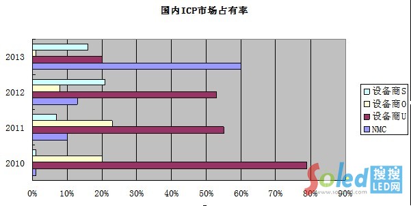 北方微電子10年開始正式在LED上推干法蝕刻設備,到2011年開始在新增的刻蝕機市場上占有一定比例,在12年推出了330的升級版330plus,在13年又陸續(xù)推出了采用靜電卡盤的330S+、330SGE+。NMC GaN ICP設備憑借較為先進的技術工藝水平、客戶端的穩(wěn)定運行,較快的服務響應時間,2013年一舉取得超過60%的市場份額。
