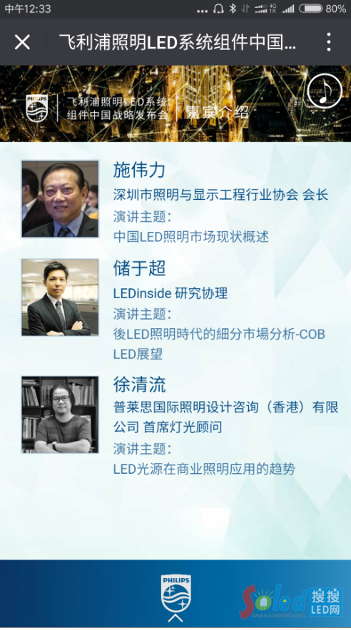 在邀請嘉賓名單中,我們還看到了深圳市照明與顯示工程行業(yè)協(xié)會會長施偉力和LEDinside研究協(xié)議儲于超這些行業(yè)大咖的名字。讓我們愈發(fā)期待此次發(fā)布會上,飛利浦會帶來很多的干貨給我們,給到整個行業(yè)。